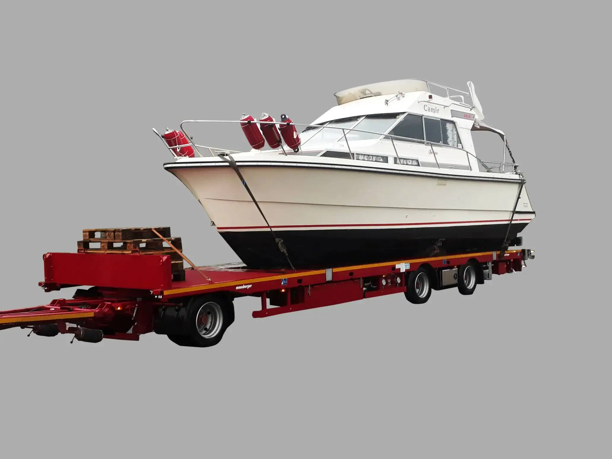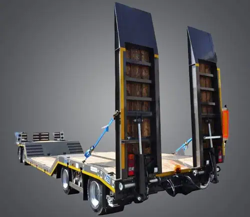 4 axlad 38 ton maskinvagn, med hydrauliska påkörningsramper, hög punktbelastning.