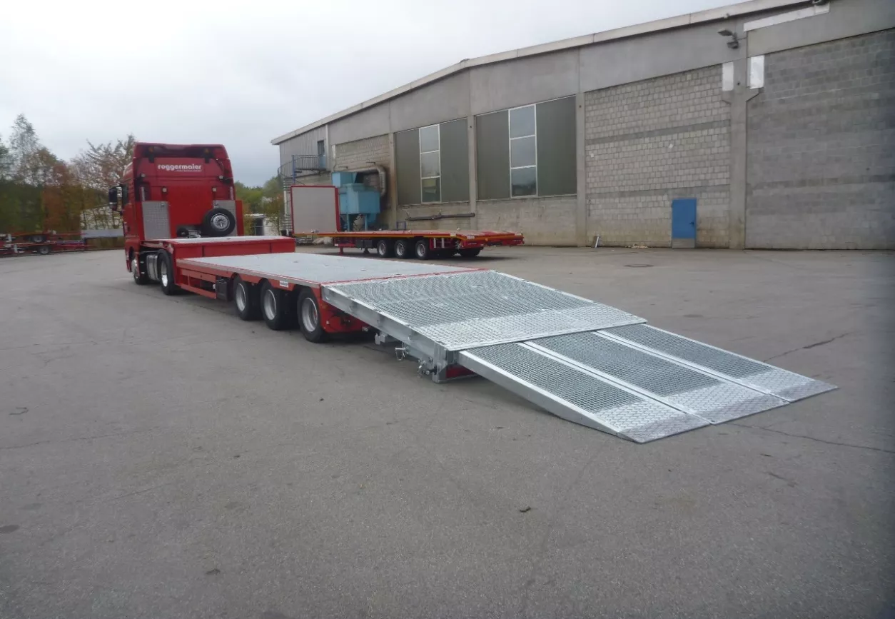 3 axlig GW 50 ton, hjulfickor, hydrauliska påkörningsramper, ex användning: lantbruksmaskiner.